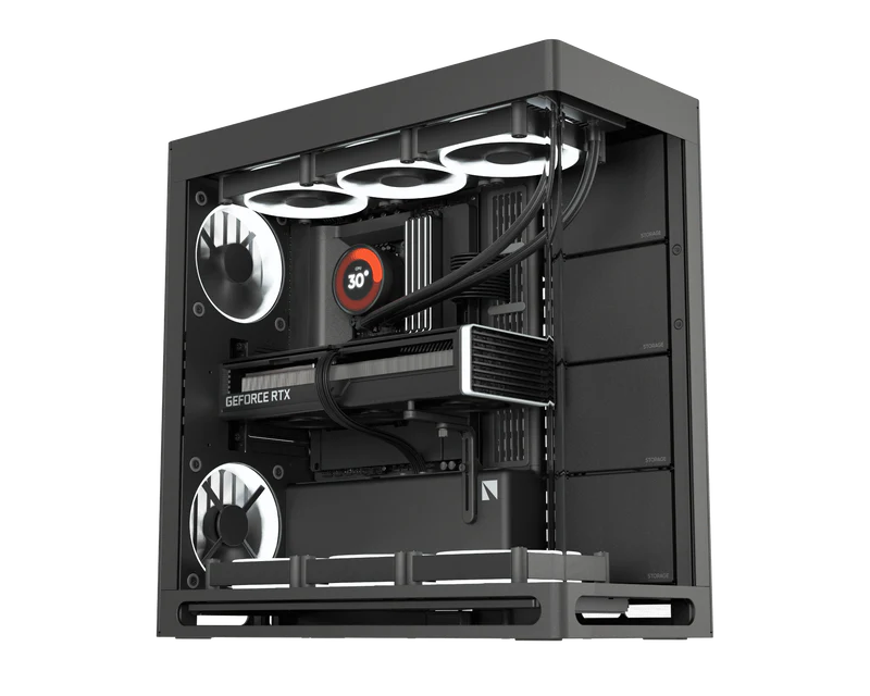 Doté du HS420 de chez HAVN, ce boîtier épuré et élégant est disponible en version VGPU pour mettre en valeur votre carte graphique en position verticale.